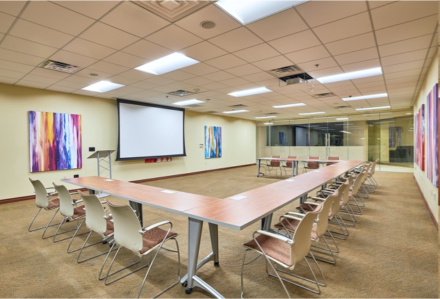 Crown Point has a brand new built-in screen and projector that recesses into the ceiling with wired and wireless presenting options.